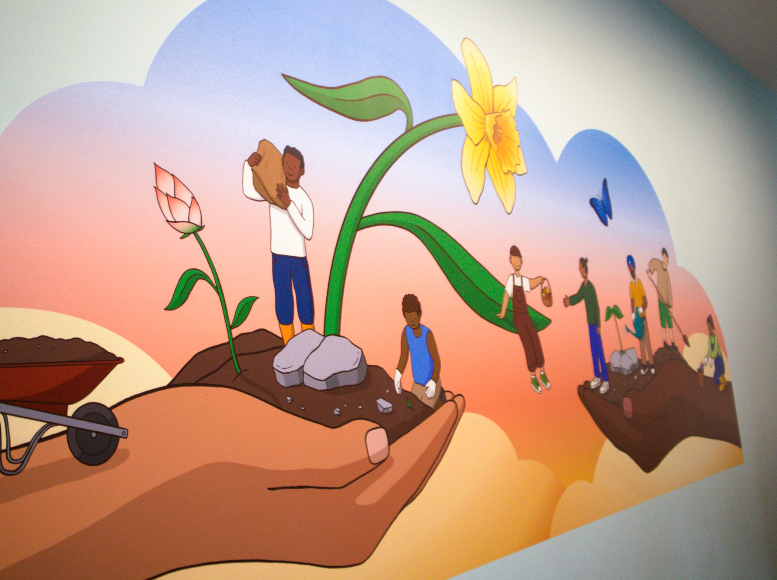 Mural illustrations for City of Toronto - Toronto Shelter and Support Services (TSSS) located at Junction Place Shelter for Men